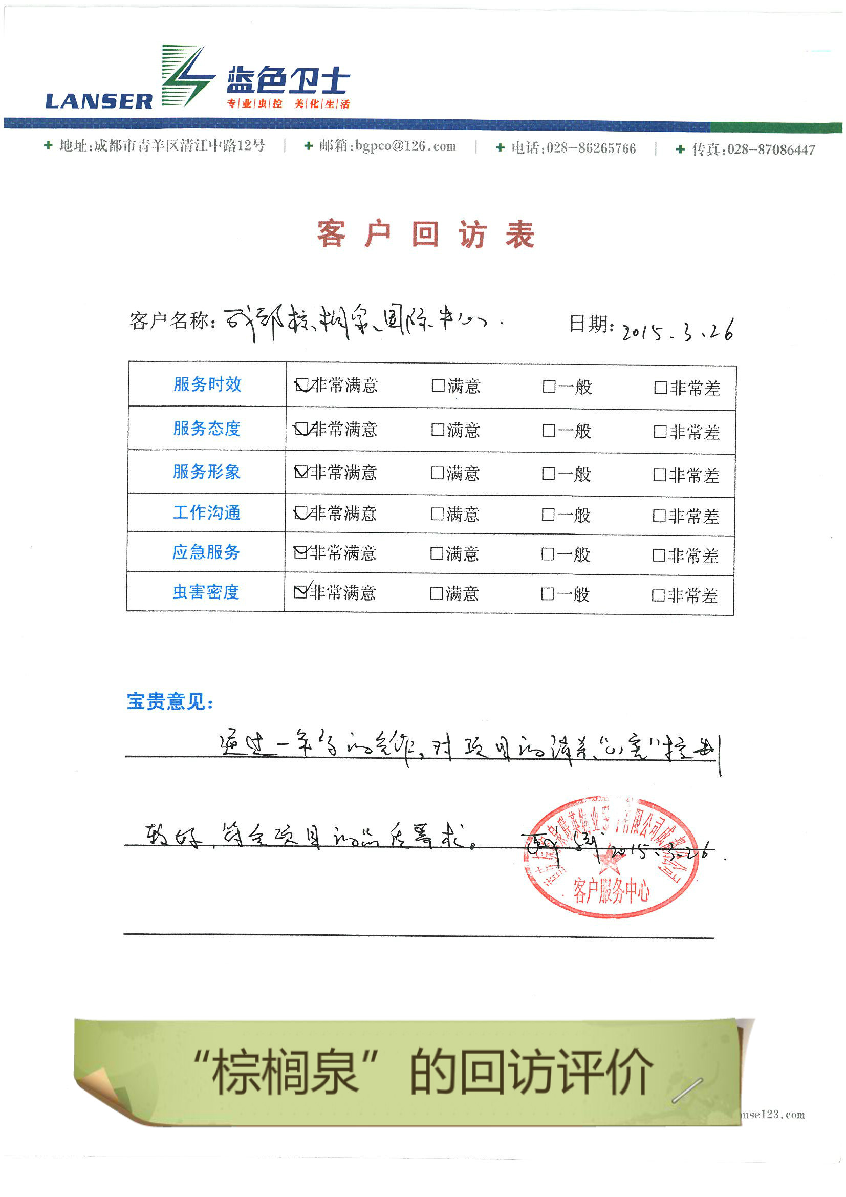 通過合作,對四害的消殺控制的很好,符合項目品質(zhì)要求!